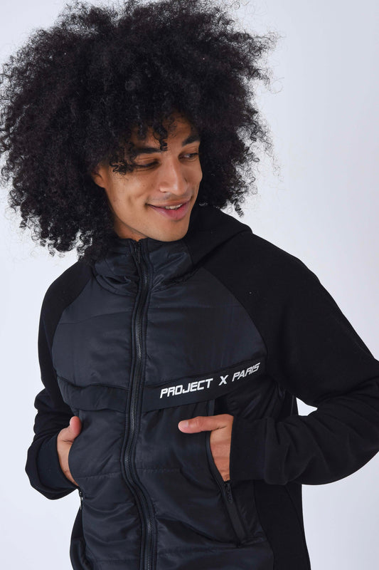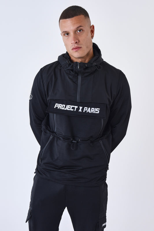 Sweat capuche Project X Paris bimarière type coupe-vent noir