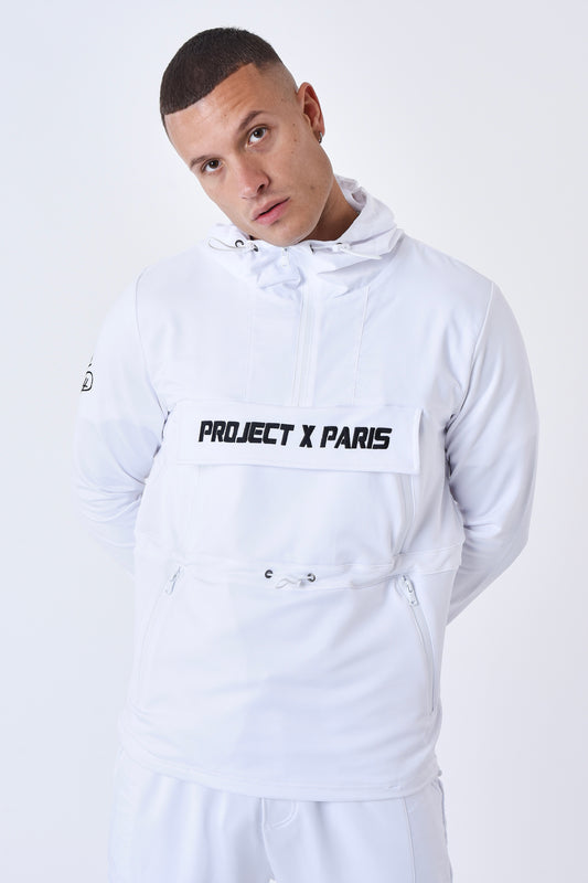 Sweat capuche Project X Paris bimarière type coupe-vent blanc